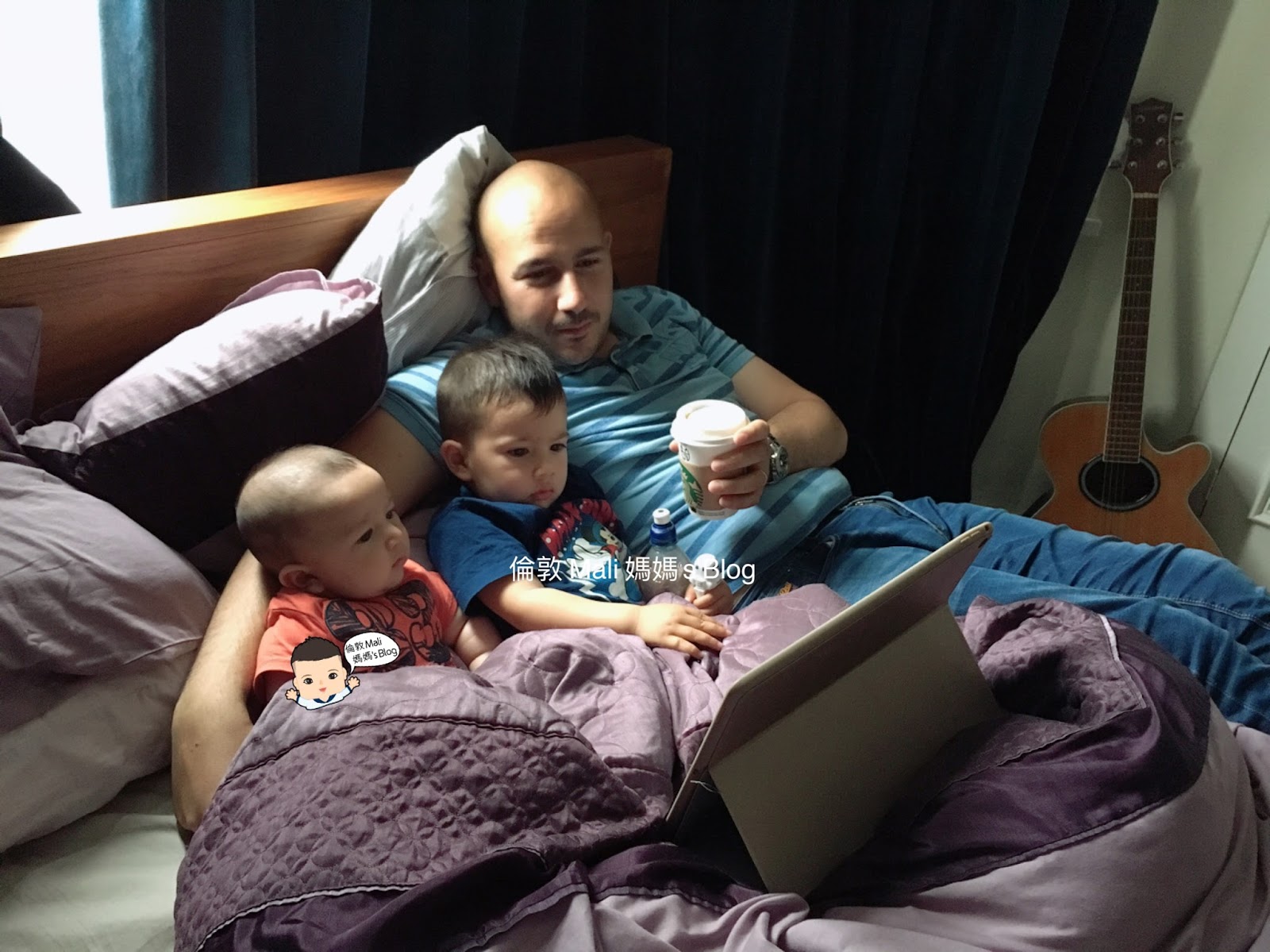 午睡醒來,Dom 爸放工回來,他們有 20 分鐘看卡通的時間
