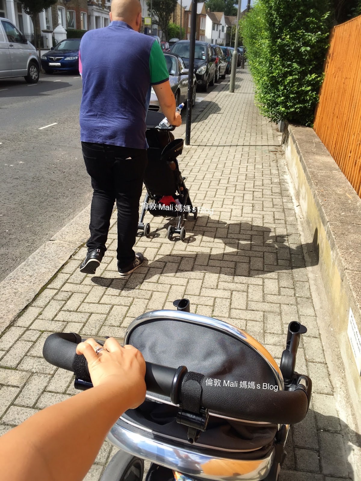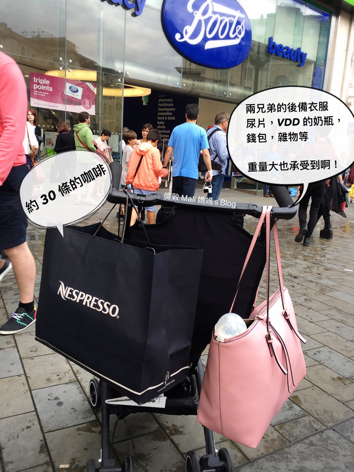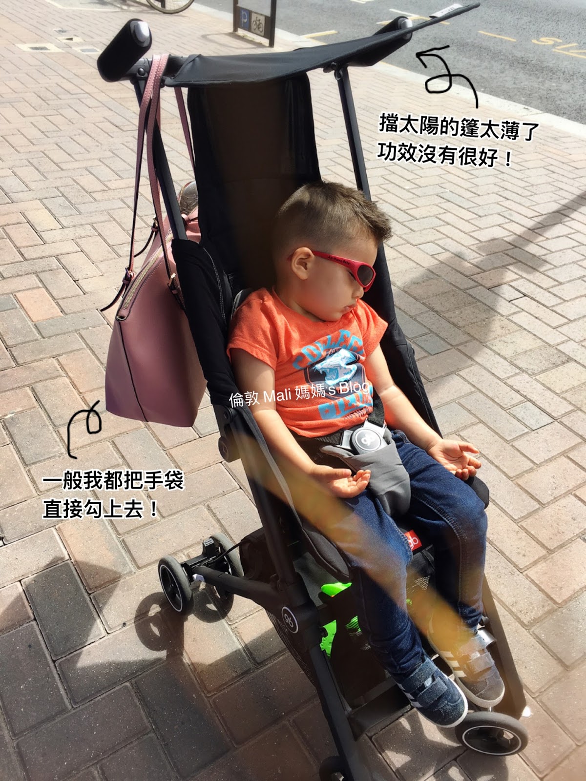 習慣這台小推車之後,我開始把手袋掛上去,畢竟不能一直提著手袋,會好累!而且有時候出去倫敦市中心或 Chinatown 的話,更有可能背著 VDD ,所以更要試試能不能掛上有重量的隨身物品!