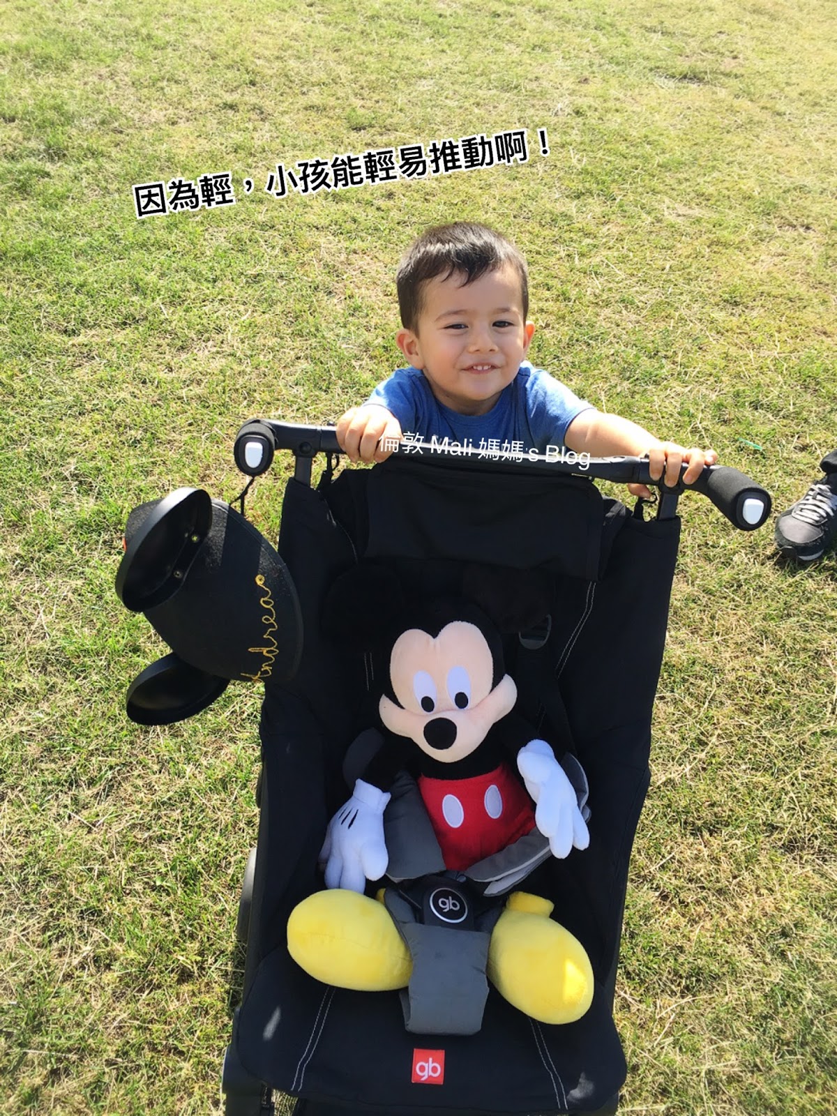推到草地感受一下,好輕便,容易推,沒有因為車輪小而容易卡到草叢之間!