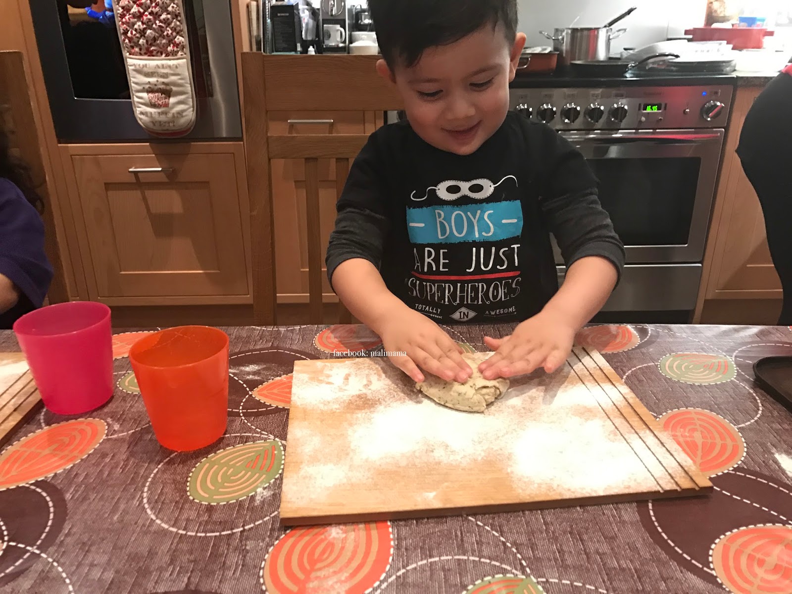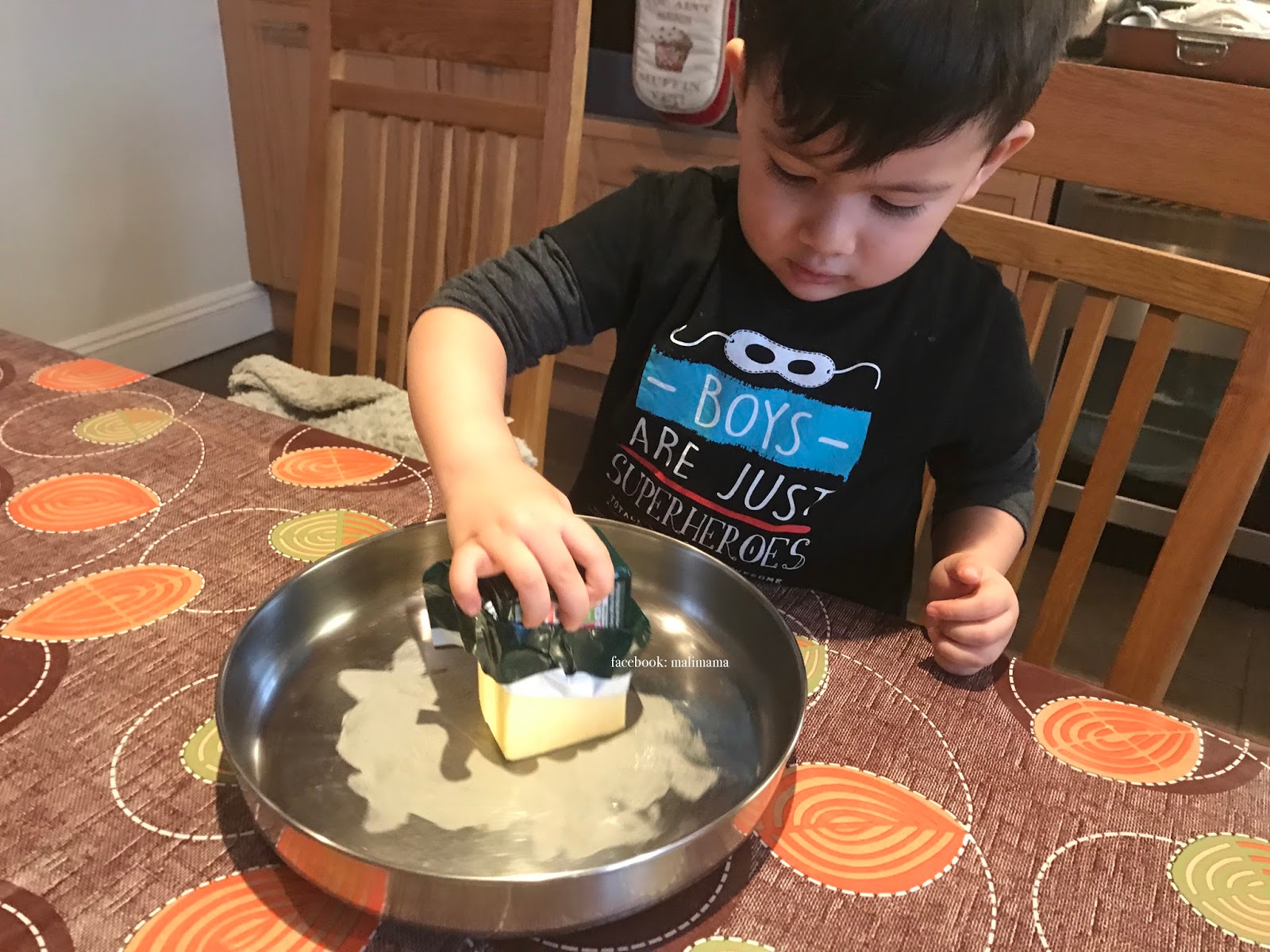 自從上星期,我叫 AJ 跟我一起做午餐之後,他非常喜歡,亦極度樂意參與,所以這兩天都讓 AJ 跟堂姊二人一起合力做晚餐上的包點!!先來做一下:香草芝士麵包 吧!!!