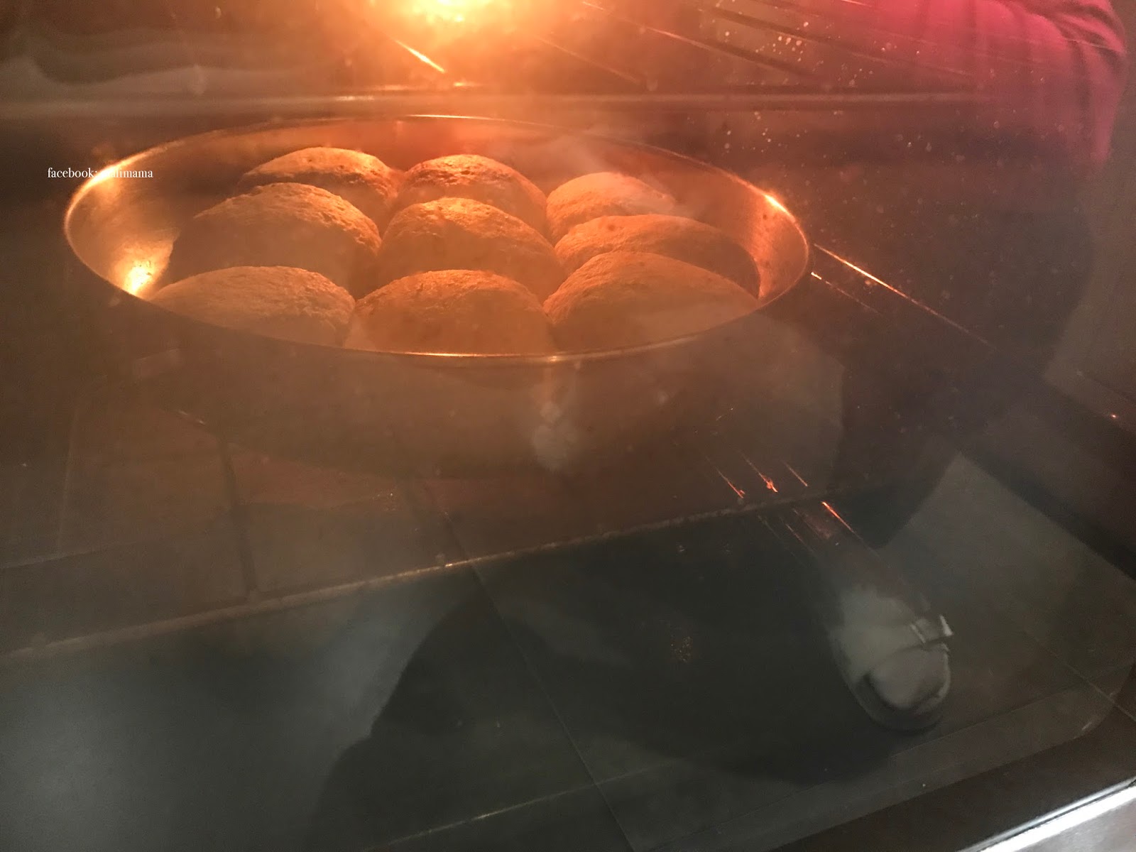 因為我們的廚房比較冷,所以用了焗爐去幫助發酵,先預熱焗爐 2 分鐘,關掉焗爐,把麵團放進去,以餘溫幫助發酵, 15 分鐘之後,再重複這個步驟!發酵後,麵糰會增大一倍的份量,如下圖: