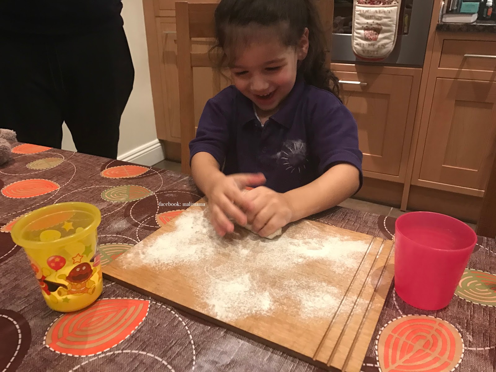 在媽媽攪拌麵粉的時候,小孩們可以用牛油塗抹焗盤和用具: