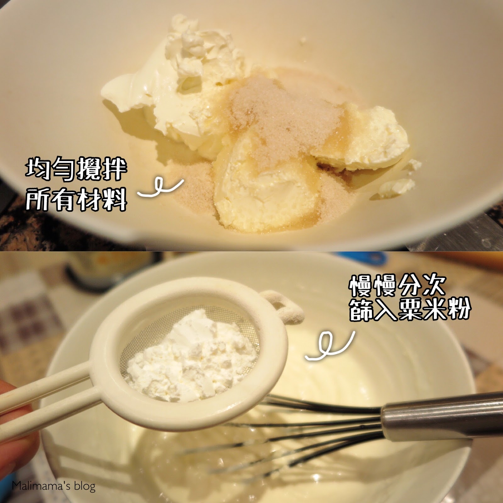 1)將室溫的忌廉芝士,軟芝士,跟糖攪拌均勻 (我都是手攪的)