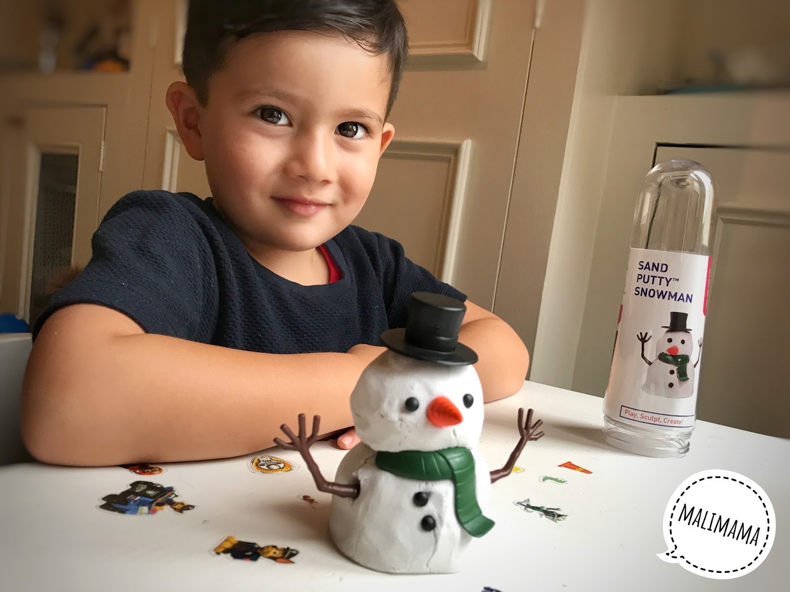小小的一盒,非常方便攜帶,作為小禮物也很適用!內裏附有配件,可以造出雪人造型。跟 AJ 一起玩,三歲以上也非常適合了,質素能夠媲美 kinetic sand 那個牌子,如果真的要數當中的不足,就是它的黏着力比較差,很難造型,很容易便散開了!但是如果以沙的質感及配件的材料去比較,它算是高質素的了!