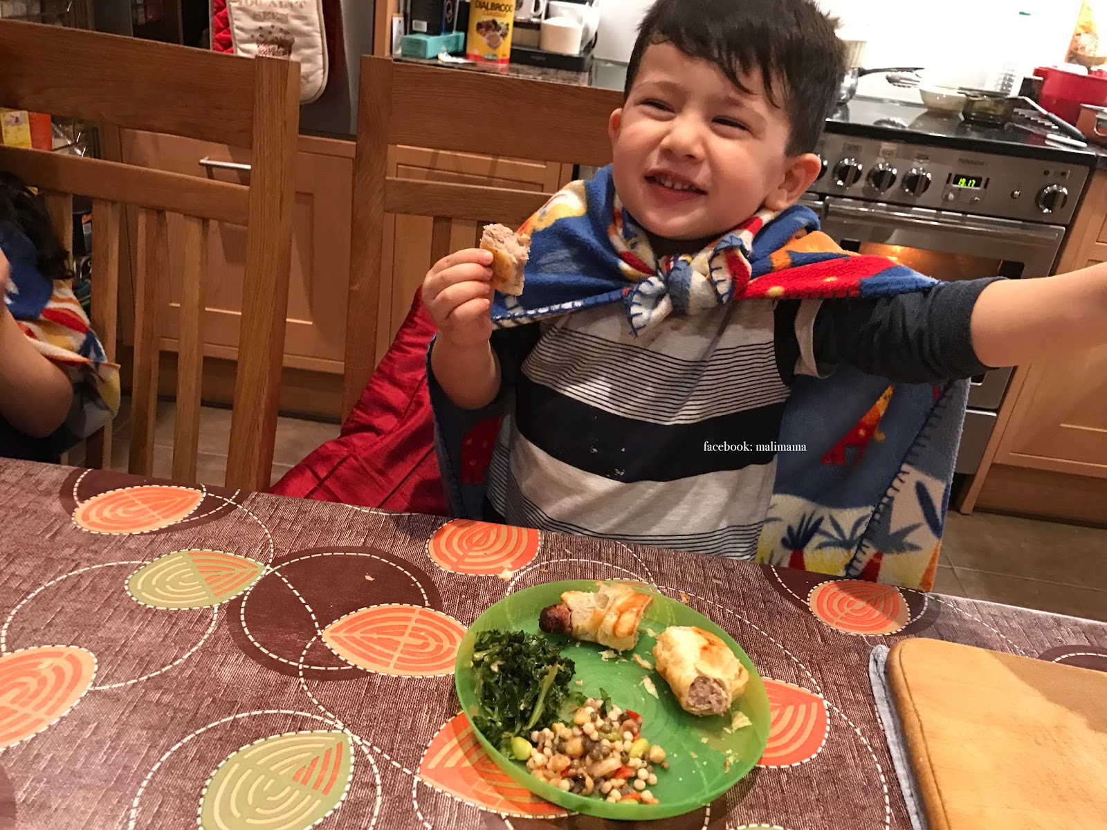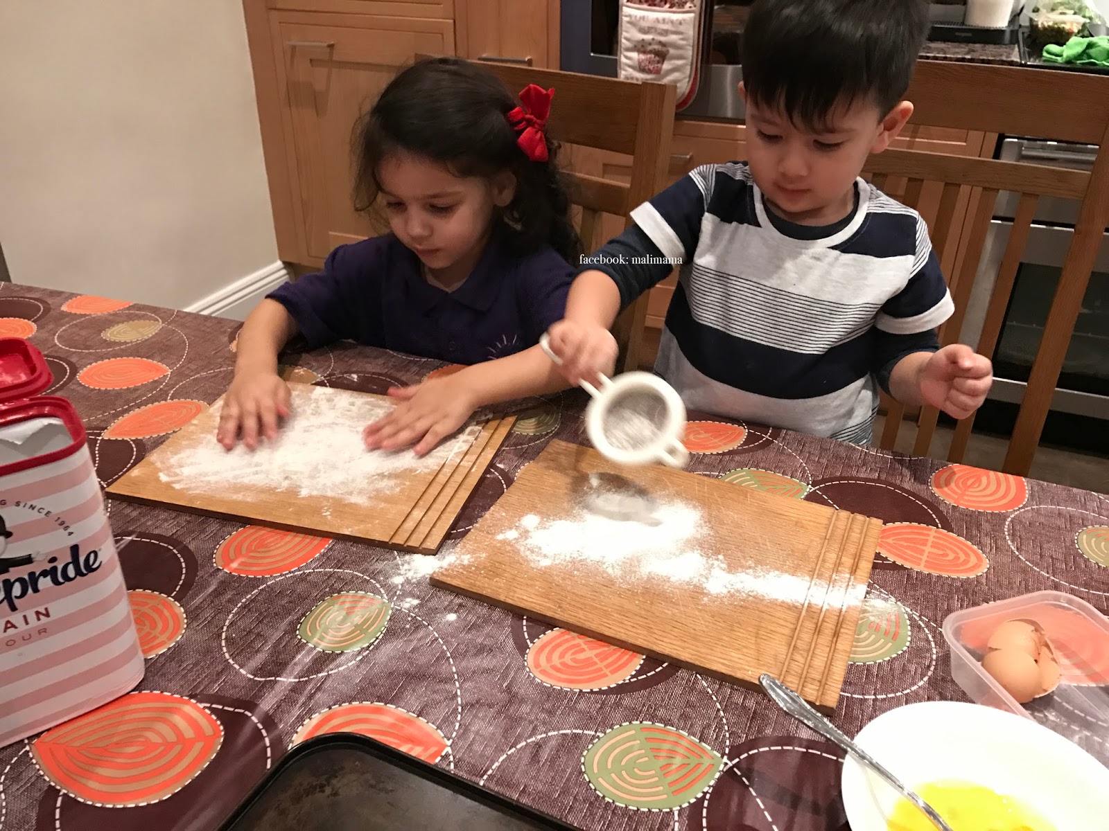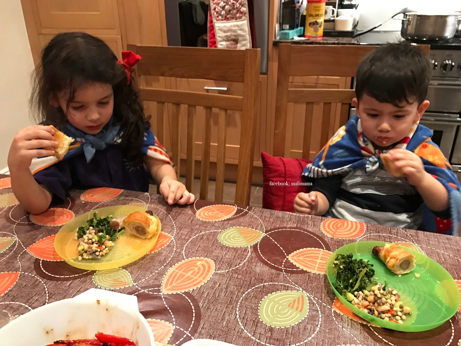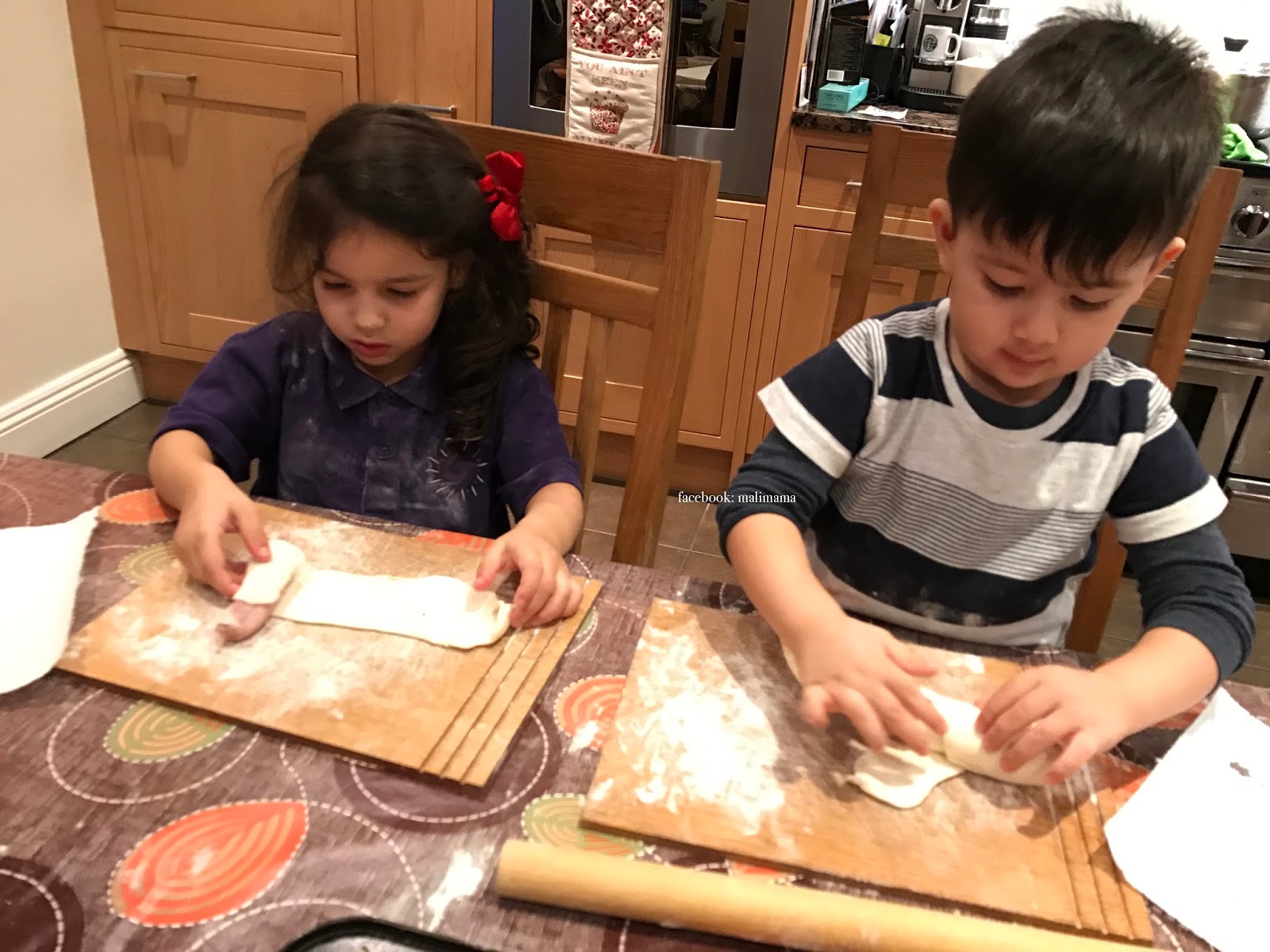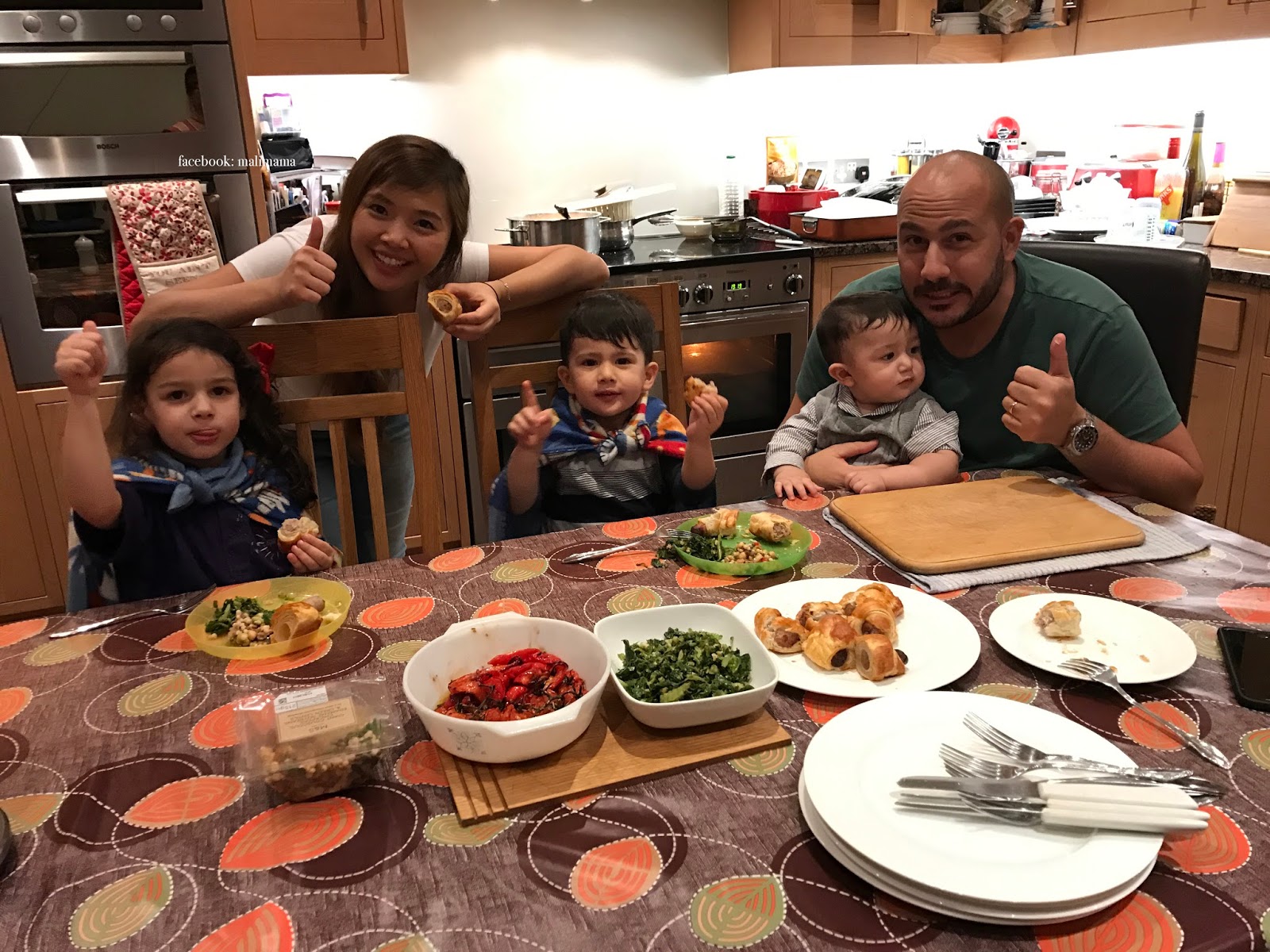 合照一下,其實成人還在等待焗爐裏的烤雞!sausage roll 只能當我們的小吃!哈哈哈哈